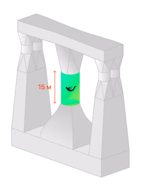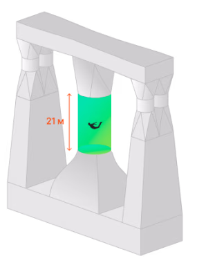 Две аэротрубы: 15м высота 3,5 м диаметр, и самая большая 21 м и 5 м соответственно