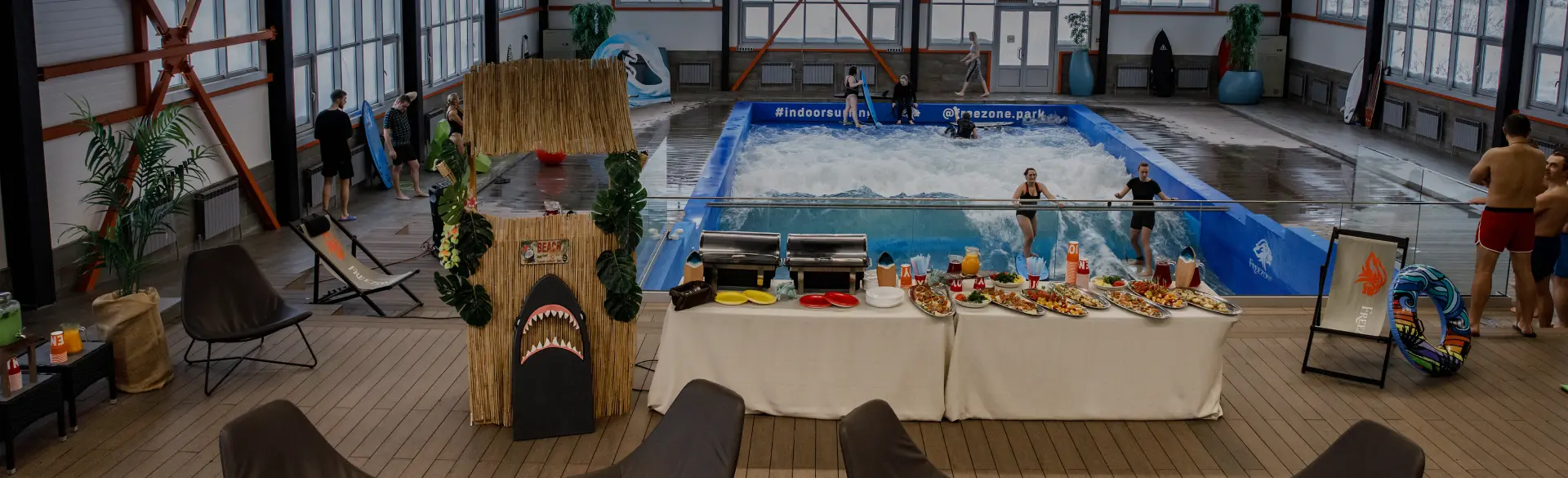 Проведите незабываемую свадебную церемонию и удивите гостей захватывающими развлечениями: полетом в аэротрубе или серфингом в закрытом бассейне. Мы воплощаем самые смелые и оригинальные идеи, гарантируем комфортное размещение гостей, стильное оформление фотозон и изысканные угощения от шеф-повара. Пусть Ваш день станет волшебным событием, которое останется в сердце и памяти надолго!